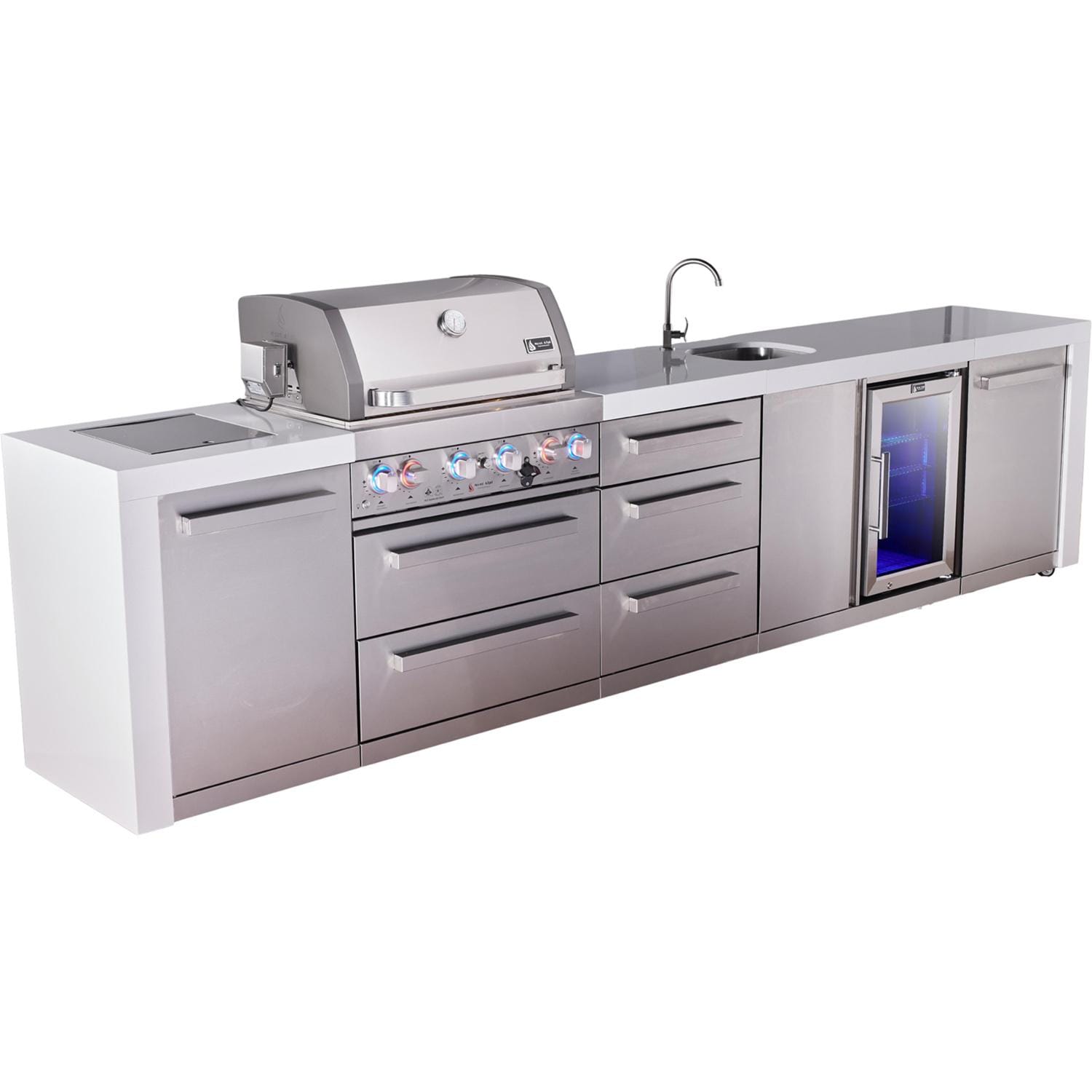 Transform your backyard into a luxurious outdoor cooking and entertainment space with the Mont Alpi Deluxe Series Outdoor Kitchen Island. Designed for serious grillers and passionate entertainers, these all-in-one grill islands deliver high-performance cooking power with elegant design and unmatched convenience. Smart features like LED control knobs (blue when off, red when on) and bright internal cooking lights provide superior visibility for nighttime grilling. A granite matching cutting board adds convenience for meal prep, while the full-size weather cover protects your investment year-round. Whether you're hosting a lively barbecue or preparing a gourmet meal under the stars, the Mont Alpi MAi400-DBEVDR ensures a seamless and stylish grilling experience.