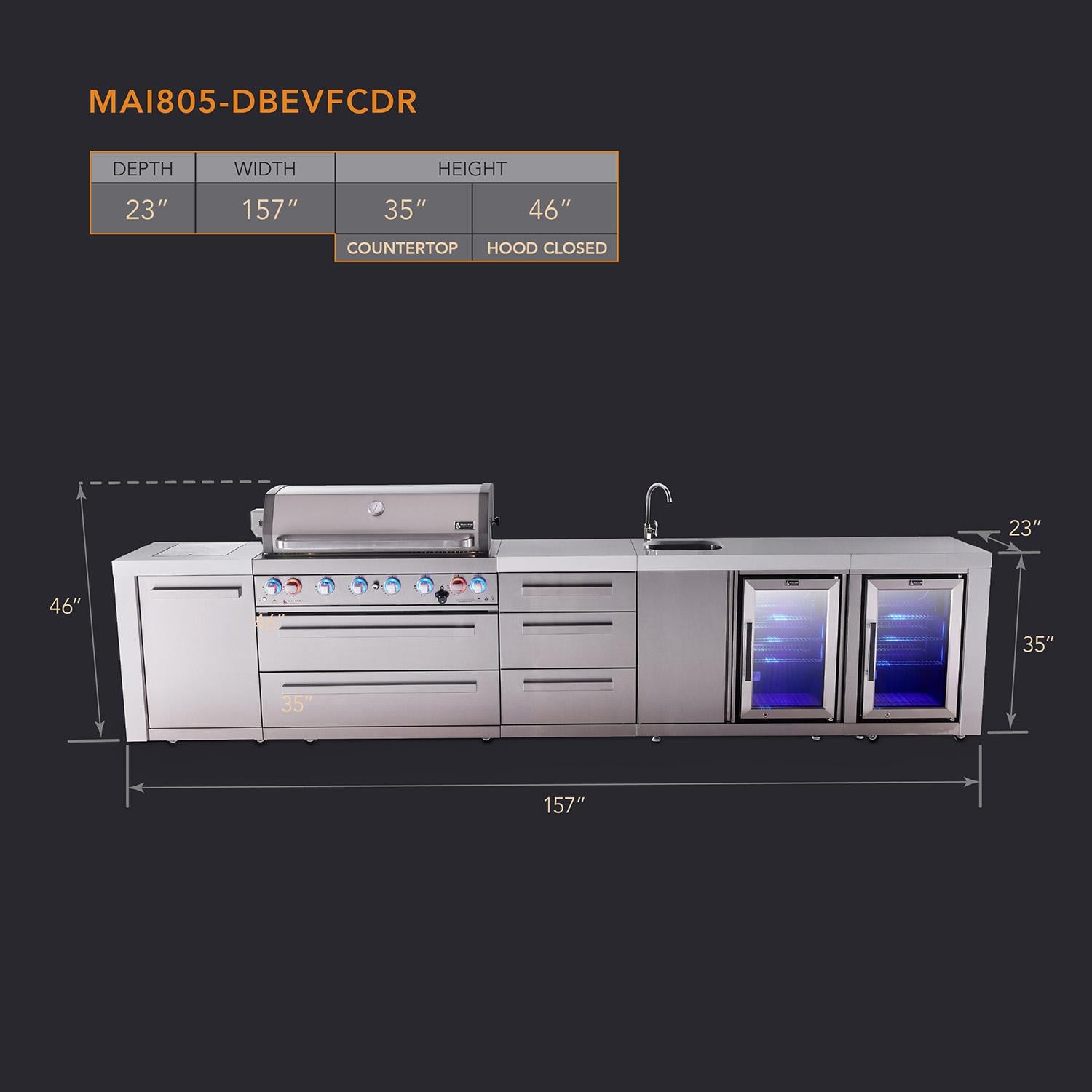 Transform your backyard into a luxurious outdoor cooking and entertainment space with the Mont Alpi Deluxe Series Outdoor Kitchen Island. Designed for serious grillers and passionate entertainers, these all-in-one grill islands deliver high-performance cooking power with elegant design and unmatched convenience. Smart features like LED control knobs (blue when off, red when on) and bright internal cooking lights provide superior visibility for nighttime grilling. A granite matching cutting board adds convenience for meal prep, while the full-size weather cover protects your investment year-round. Whether you're hosting a lively barbecue or preparing a gourmet meal under the stars, the Mont Alpi MAi805-DBEVFCDR ensures a seamless and stylish grilling experience.
