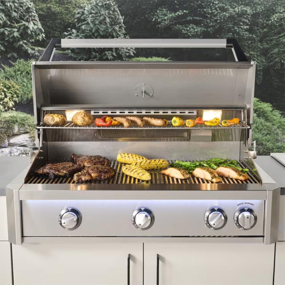 Designed for versatility, the L-Series supports a wide range of cooking styles, from rotisserie roasting to high-temperature searing. Available in multiple sizes, each grill includes a gas conversion kit, grill cover, backburner, and rotisserie kit for added value. Built-in models can also be converted to a freestanding cart configuration, giving you flexibility as your outdoor kitchen evolves.