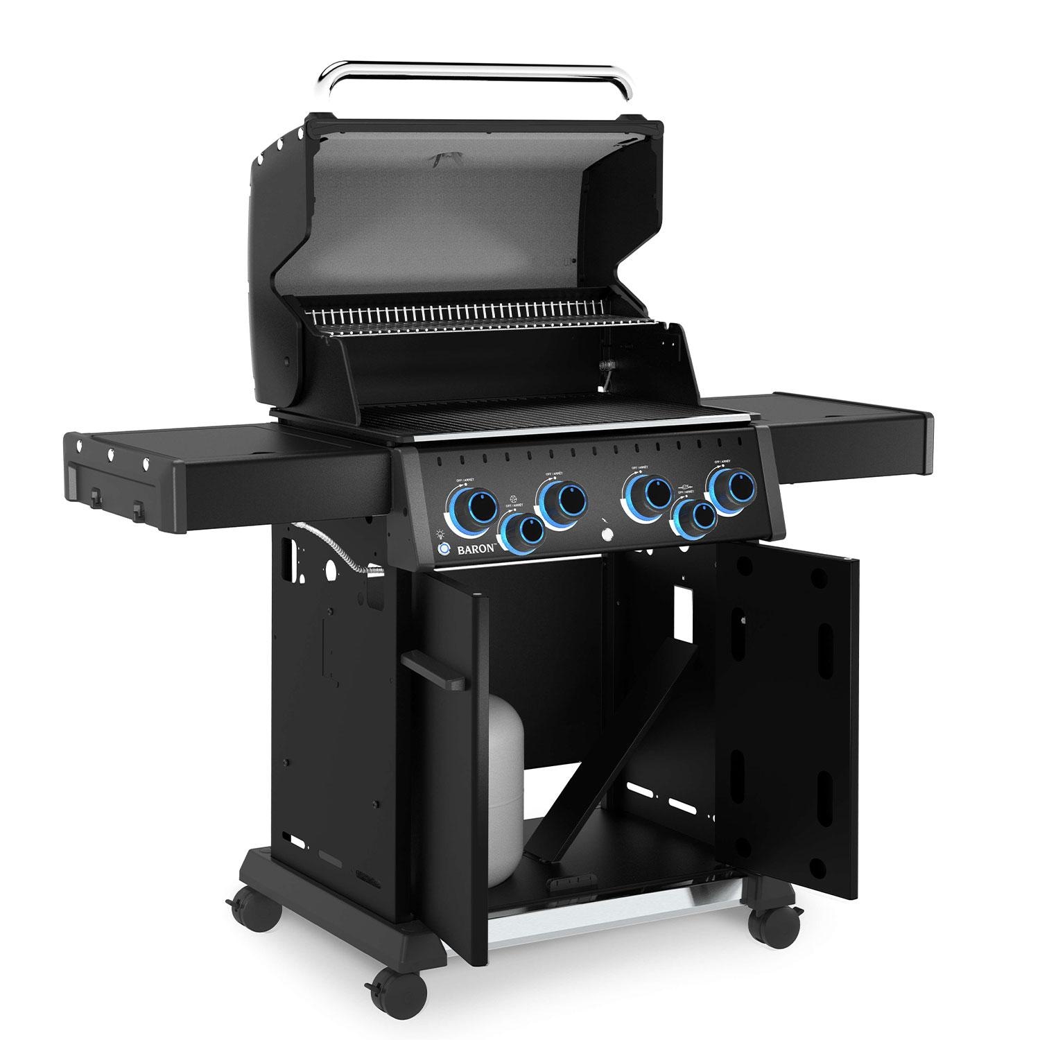 - Equipped with 4 stainless steel Dual-Tube burners delivering 40,000 BTUs, a 10,000 BTU side burner perfect for side dishes and sauces, and a 15,000 BTU rear burner with a premium rotisserie kit for exceptional roasting versatility
