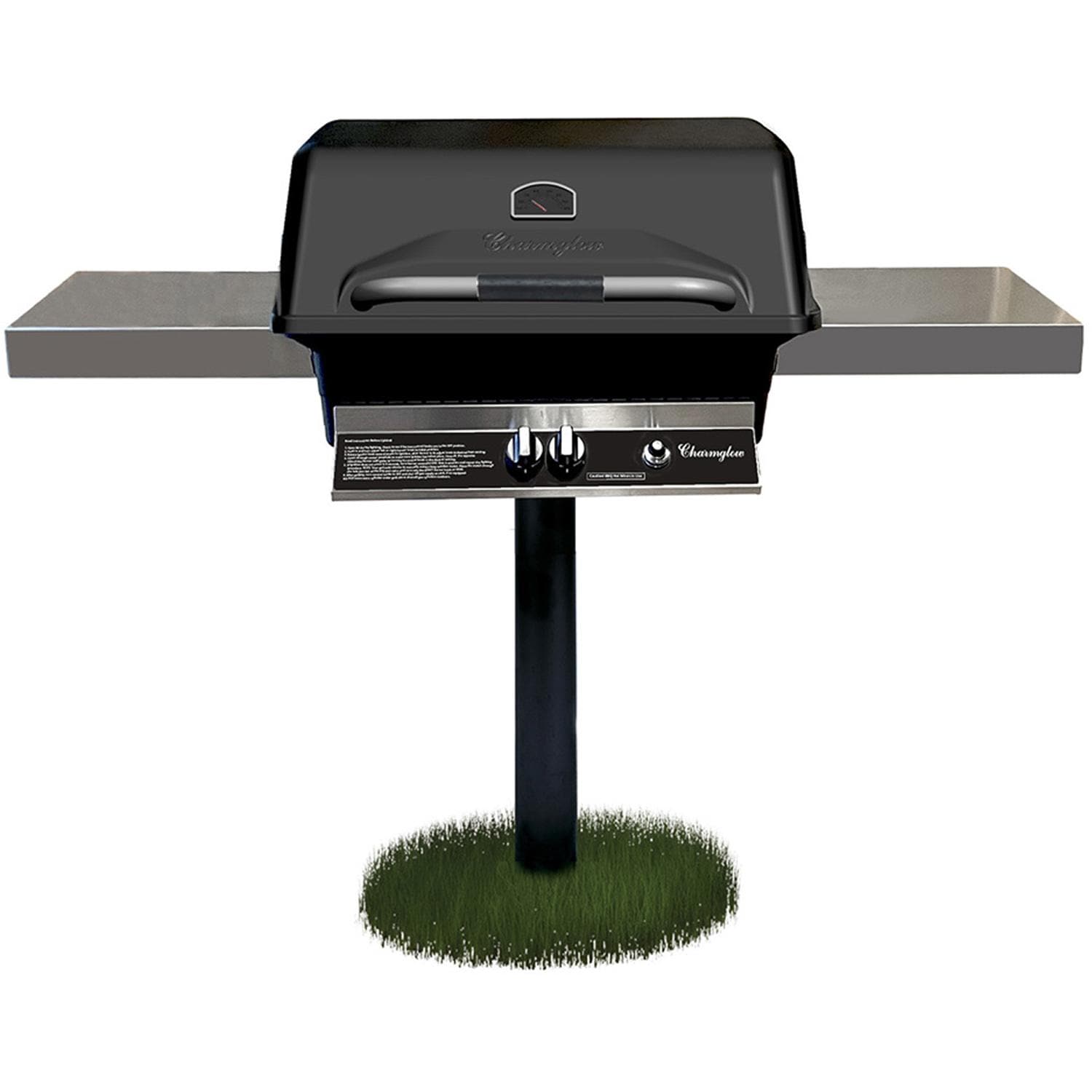 - Two-piece inground aluminum post in black powder coat - sleek, space-saving design, connects to standard 20 lb. propane tank (tank not included)