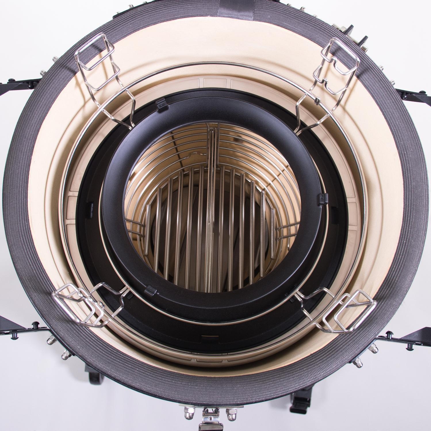 - Air lift hinge reduces dome weight, allowing you to lift the kamado lid with ease