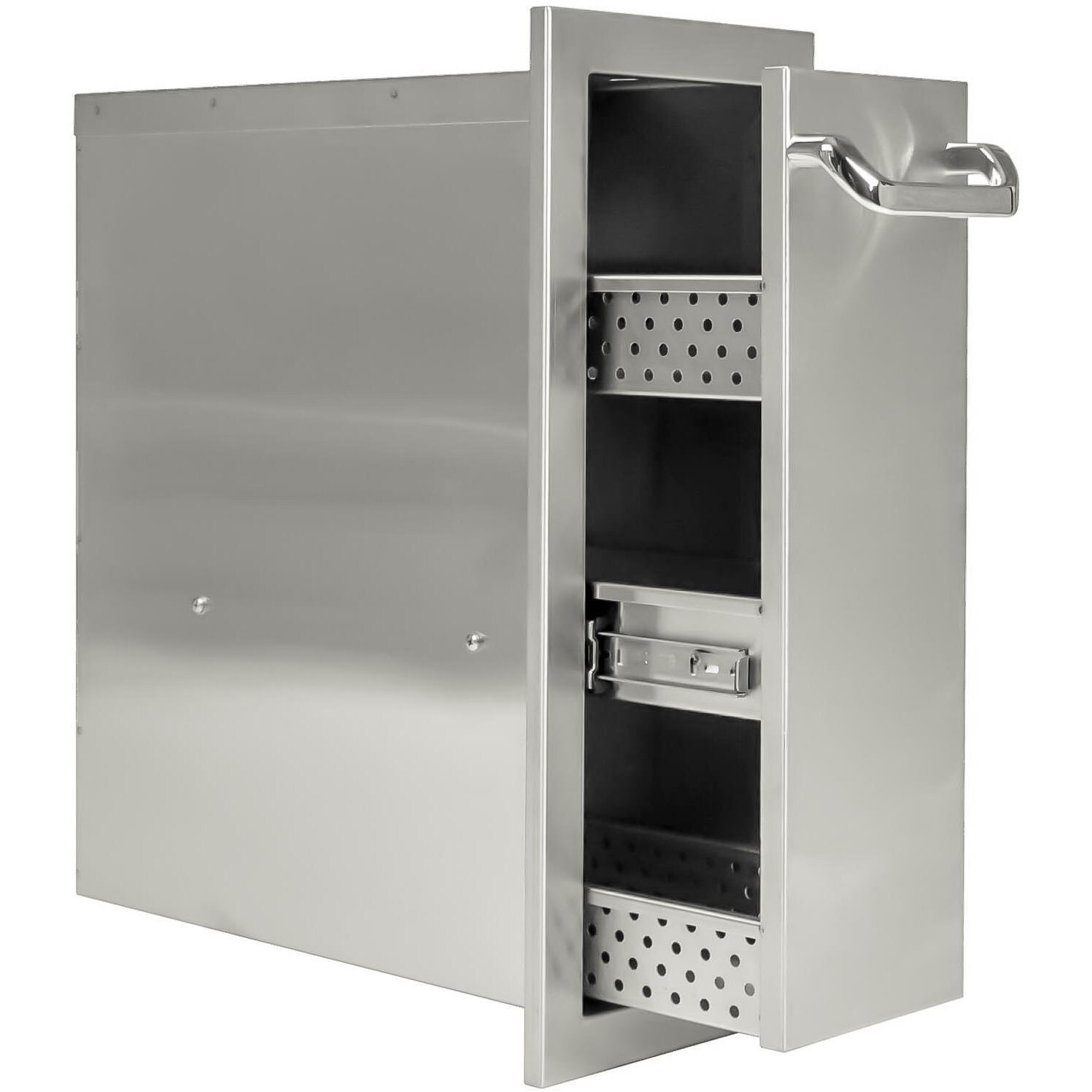 Adding storage to your outdoor kitchen makes it more useful and keeps it looking great. BBQGuys offers the largest selection of outdoor kitchen storage components in beautiful teak wood and stainless steel. With storage options like access doors, drawers, and cabinets, you can store all your cooking tools and supplies organized and safe from the weather. A door and drawer combo can help reduce clutter and gives you more countertop space for cooking and serving. Having enclosed storage and a built-in roll-out trash container nearby also means you don’t have to run back and forth between your indoor kitchen and backyard, making cooking easier and more enjoyable. You’ll also have more time to relax and entertain guests. Double access doors under your built-in grill let you easily reach propane tanks and utilities, making upkeep simple. With the right outdoor kitchen storage, you can create a neat, functional, and attractive BBQ island that becomes the heart of your backyard gatherings. We also offer free design services to help ensure you are happy with your outdoor kitchen for many years to come.